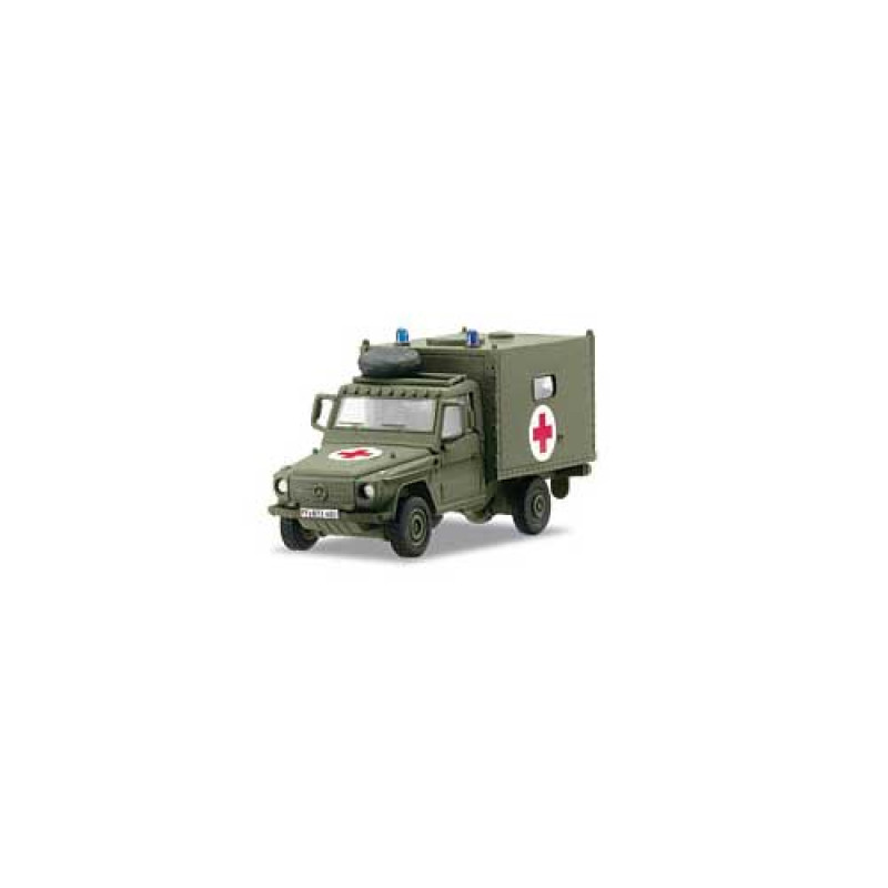 Model:The vehicle superstructure is constructed of metal. Additional components are made of detailed plastic parts. This vehicle has separately applied details and 2 blue lights. It has an authentic paint scheme with Red Cross emblems. The vehicle is lettered with identifying marks. Length approximately 6.1 cm.