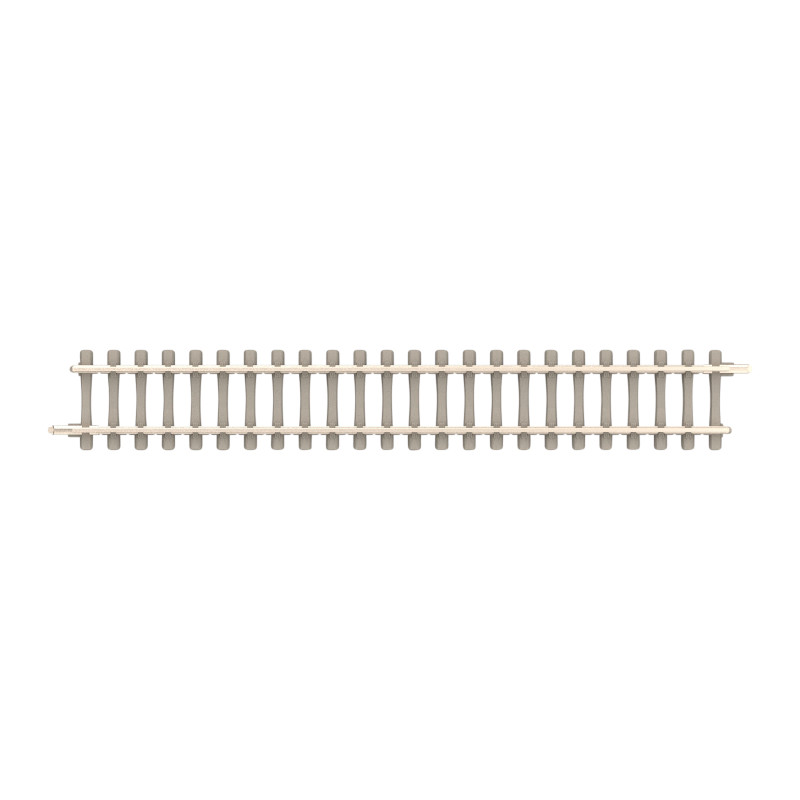 - The image shows a straight section of track with concrete ties