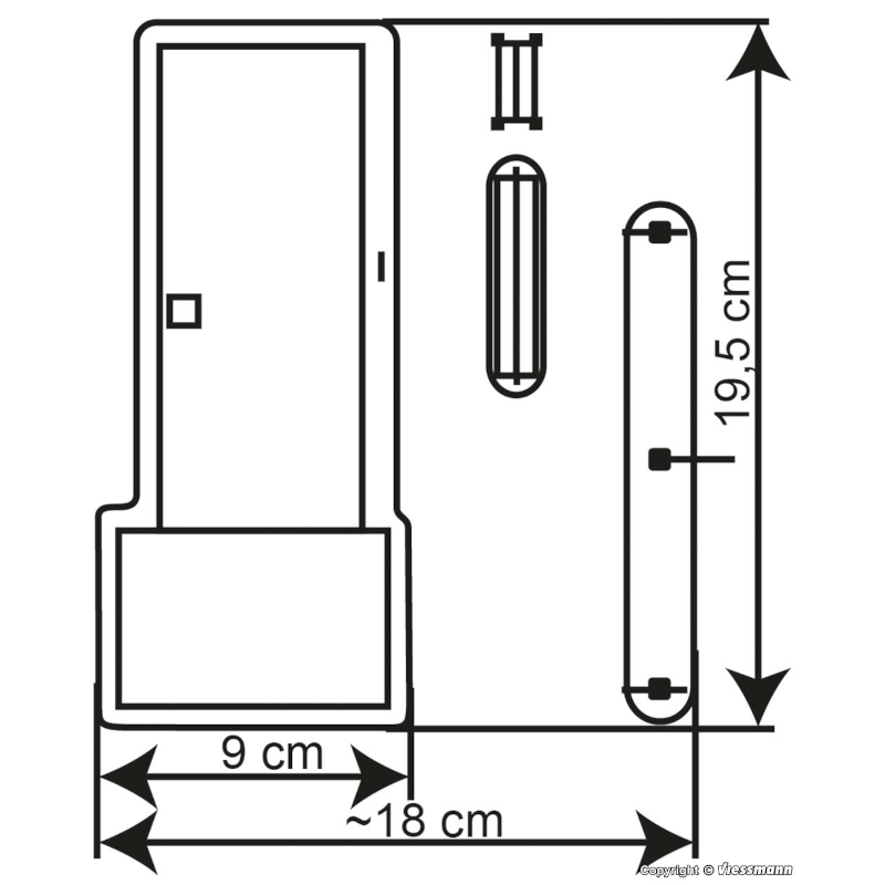 Dimensions: L 19.5 x W 9.0 / variable x H 4.5 cm
